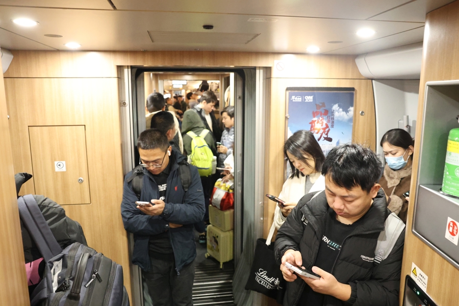 多半列车满座,部分中短途高铁车厢内站票搭客也不鲜见。