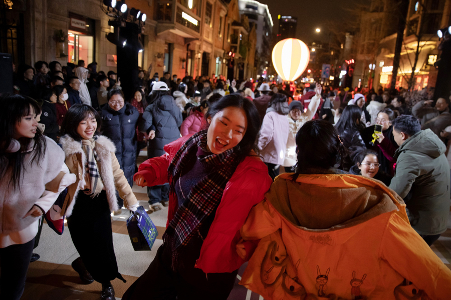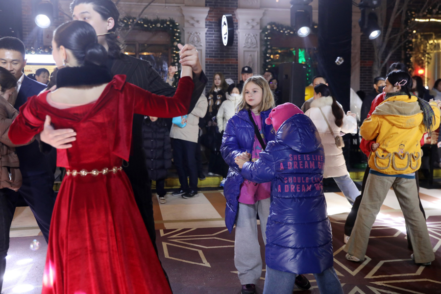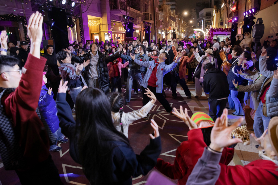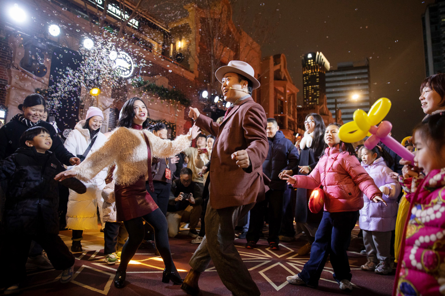 茂名北路限时步行街变身怒放式迎新舞台,张园与上海海外跳舞中心戏院共同发起的“百东说念主共舞”在此献技。探戈、爵士、扭捏舞、街舞等多元舞种轮替登场,米乐舞者们的和顺与虚幻的“飘雪”安设渲染出浓浓的新年气味。