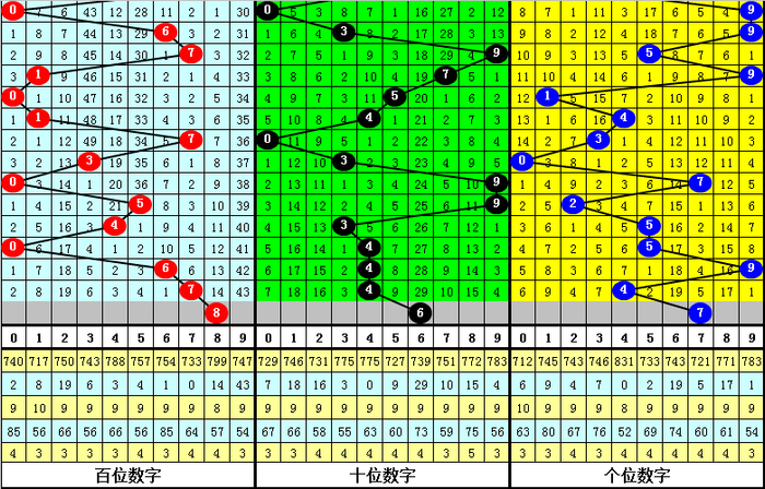 上期第一位开出奖号:7,阻隔6期出现,走势为温码,最近10期该位温码走势较冷,短期内正经该位温冷回补,本期扎眼温码,参考号码8。