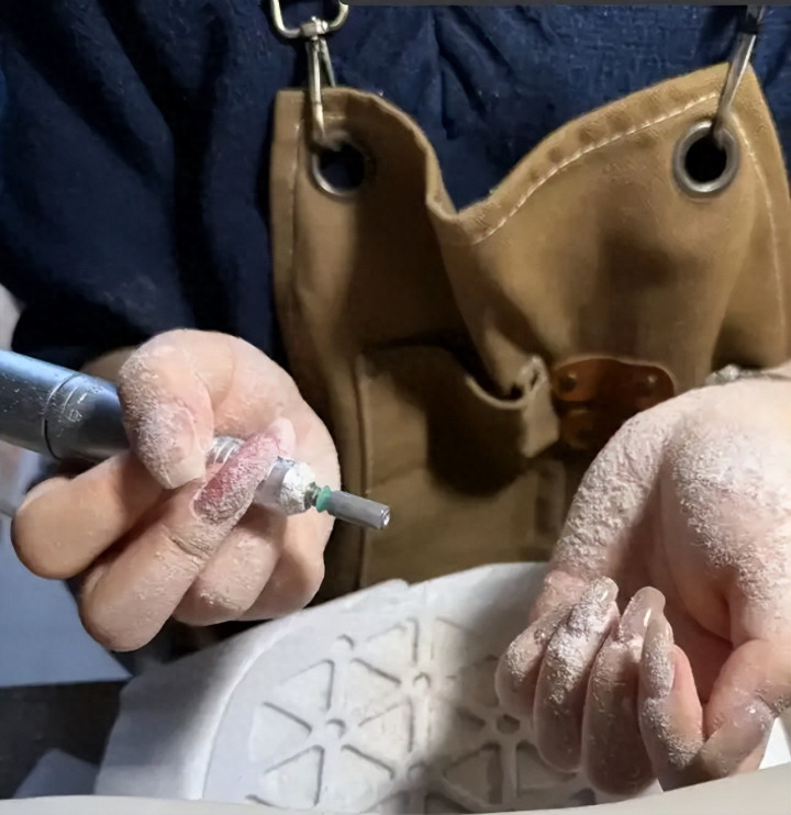 ▲兼职好意思甲的张同学正在寝室打磨甲面。图/半月谈