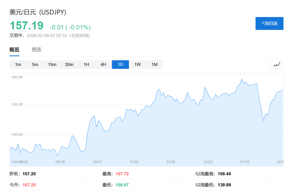 然而,外汇与债券市场则面临压力。日元兑美元汇率在周一亚洲早盘交易中走弱至157.61附近,逼近此前引发日本当局干预的160关口。与此同时,由于市场担忧政府的扩张性财政政策可能加剧债务负担,日本国债面临被进一步抛售的风险,全球基金经理在选举前已削减了对日债的敞口。