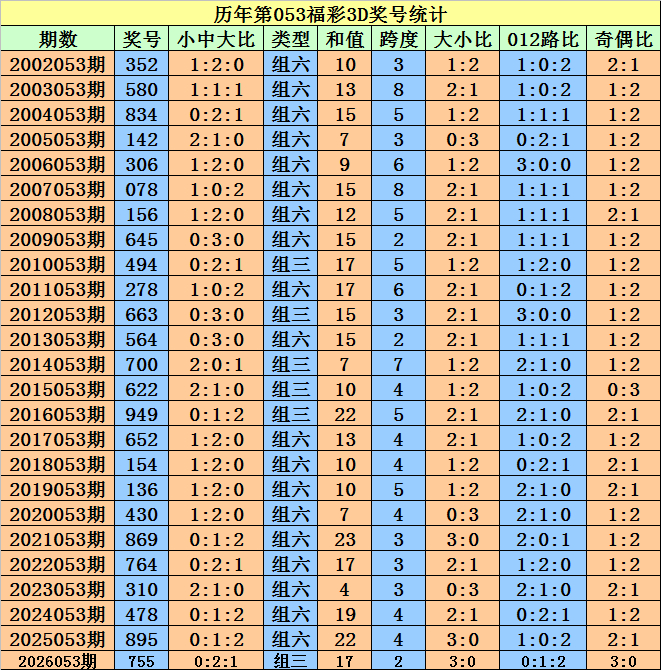 在积年同时开奖中,组三出现4次,组六开出20次,组三轮空2年,本年同时防组三。