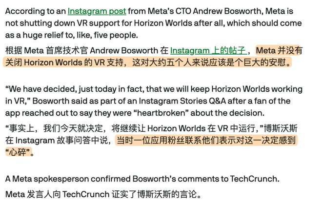 在公布关停HorizonWorlds的第二天,Meta又遽然除去了新闻,说不关了。