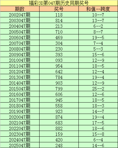 2025047期开奖号码:248