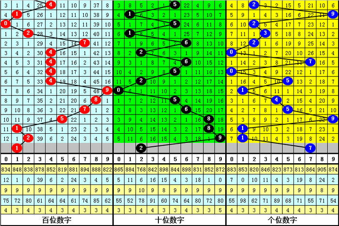 百位杀号:上期百位开出号码2,历史上百位号码2已开出838次了,最近100次百位号码2出现之后,其下期各号码频次差异为:号码6出现18次,4、7出现15次,3、9出现10次,5出现9次,0出现7次,8出现6次,1、2出现5次。