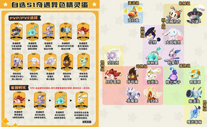 固然,现在也还是有不少大佬玩家给出了一些异色精灵的继承推选,主如果通过来往和家园孵化来进行推选的,众人也不错字据这份表格来规画一下。不外需要能干的是异色精灵有可能是雌性,导致孵蛋变得“空泛”,是以众人也不错按PVP/PVE进行继承哈。