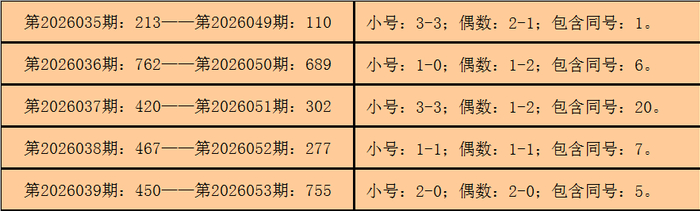 是以,3D第2026040期开出奖号:425,其大小比为1:2,奇偶比为1:2,012路比为0:1:2,与3D第2026054期奖号可能有同号。