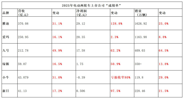 跟着新日股份财报发布,六家电动两轮车上市公司2025年“成绩单”沿途揭晓,施展奈何?底下浅薄先容一下。