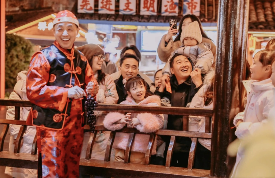 “科技之城”合肥将文化创意与节日氛围深度颐养,成为市民游客跨年打卡盘算推算地。元旦假期,罍街紧扣“开新派对,立地有戏”主题,布局约30个上演点位,日均上演超200场精彩扮演。夜幕下,米乐南区广场上的“龙马送福”扮演惊艳亮相,弘大的彩灯龙马抬头腾空,扮演者洒下的漫天彩花激发游客阵阵欣忭;罍街大不雅和罍宝广场舞台上,闇练的旋律引得东说念主群随音乐扭捏,身着古装的NPC穿梭其间,通过对暗号、接古诗等真谛互动派耸峙物兑换券,让游客千里浸式感受节日乐趣。