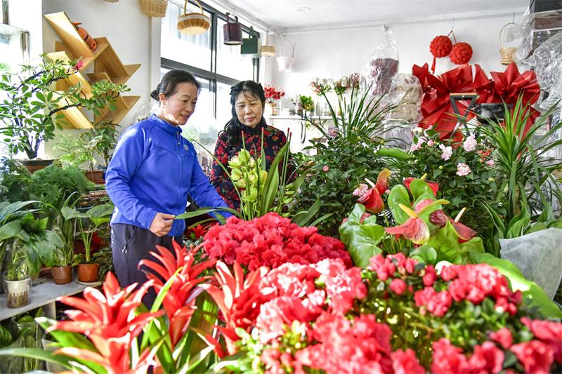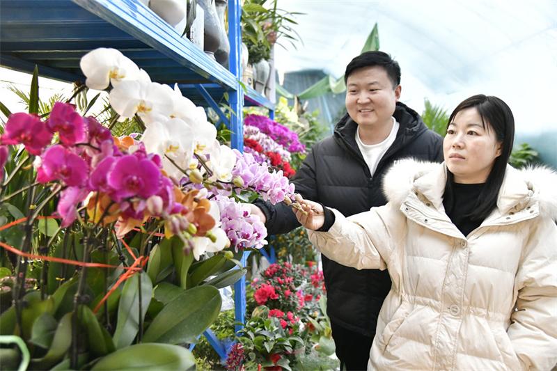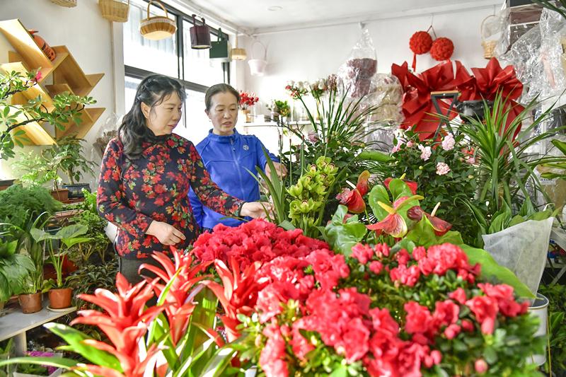 2月7日,快乐彩app官方下载广平县消耗者在花店选购鲜花。