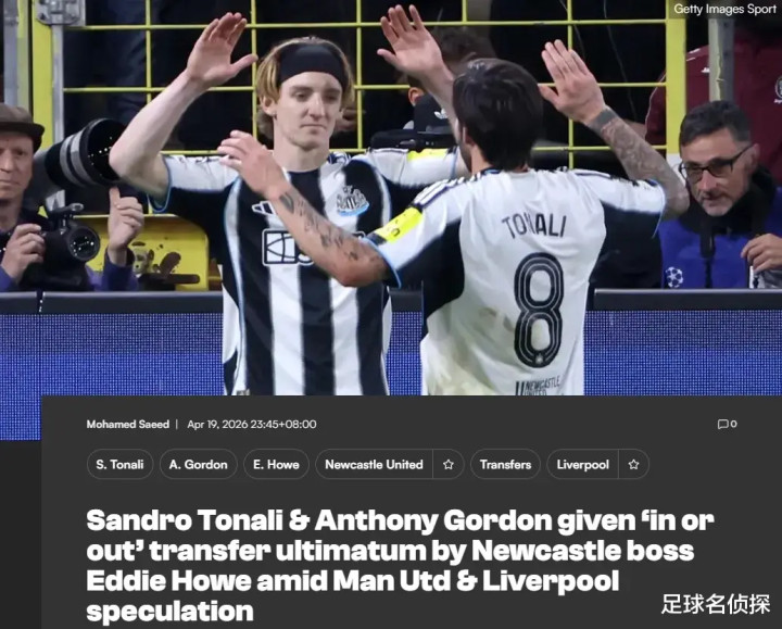 纽卡斯尔主帅埃迪-豪在新闻发布会上明确暗意,开云体育(中国)官方网站托纳利和戈登必须决定他们“是走是留”,两东谈主齐被以为将在今夏转会离队。