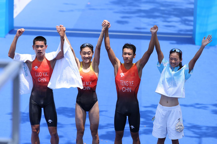 在刚刚规模的亚沙会游跑两项4x混杂起劲比赛中,由林鑫瑜、滕云峰、陆好意思伊、罗云康构成的中国队夺得冠军。至此,快乐彩app官方下载中国队包揽本次赛事游跑两项三枚金牌。