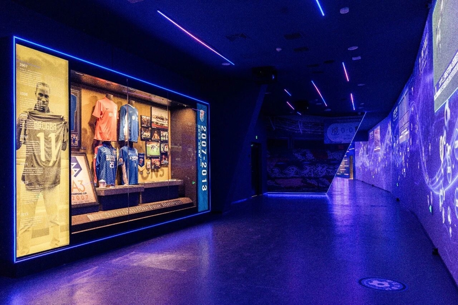 申花中心由三大功能板块有机交融,为访客提供千里浸式足球文化体验。行为技俩的灵魂场地,申花文化体验中心通过长达50米的“申花之路”互动长廊、360度环幕千里浸的“巅峰期间”影厅、勾搭红外感应与体感期间的“群星能干”及“功勋谨慎”互动展区,通过科技妙技将申花俱乐部三十余年历史转动为可触摸、可交互的纯真叙事。相称确立的“第十二东说念主”球迷文化展区,集中展现了俱乐部与球迷齐心戮力的深有情态。